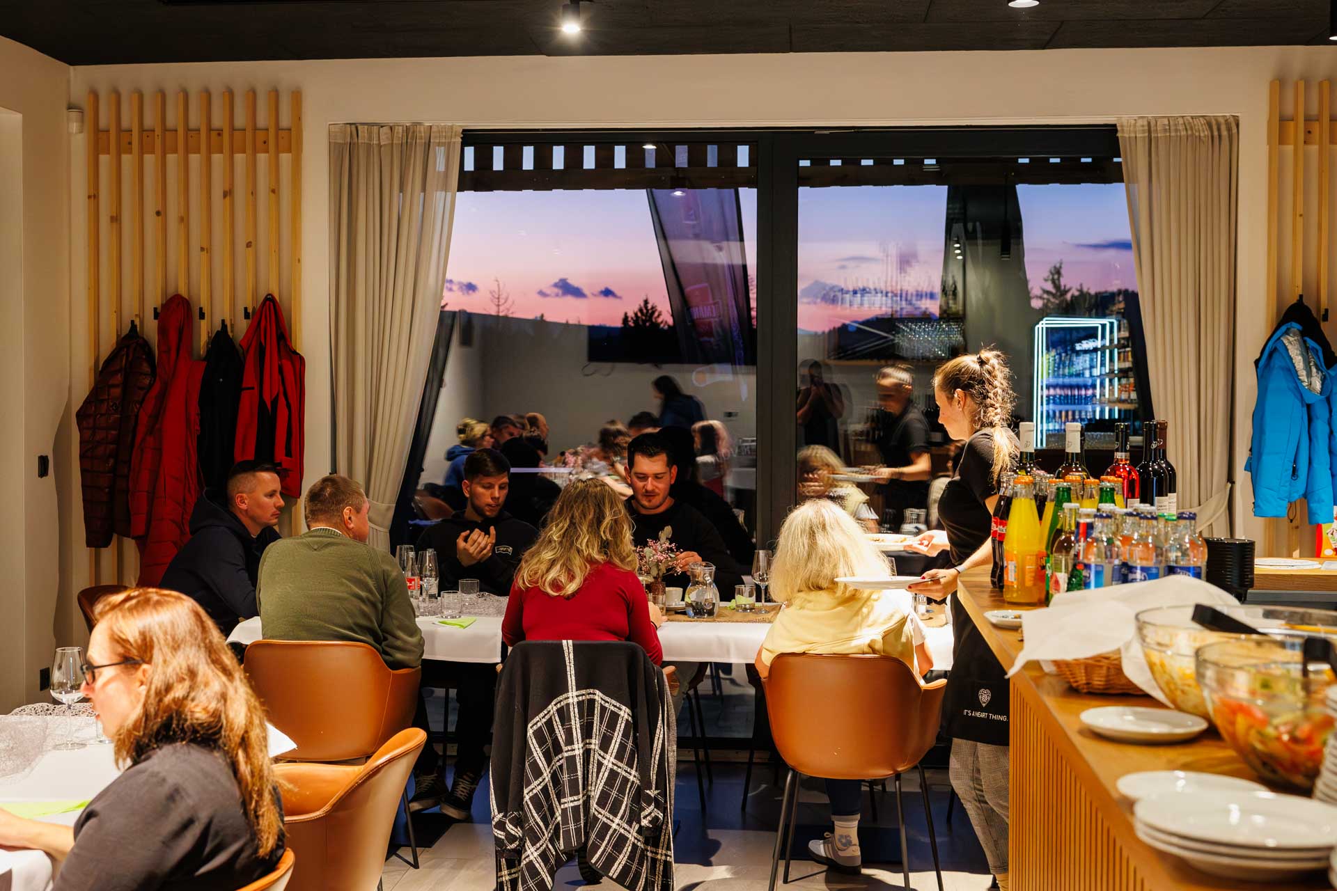 Svoj nápoj si môžete vychutnať v kaviarni pri recepcii, v presklenej aprés ski zóne s výhľadom na areál, alebo vonku na terase. Všetky tri priestory tvoria jeden prepojený celok.