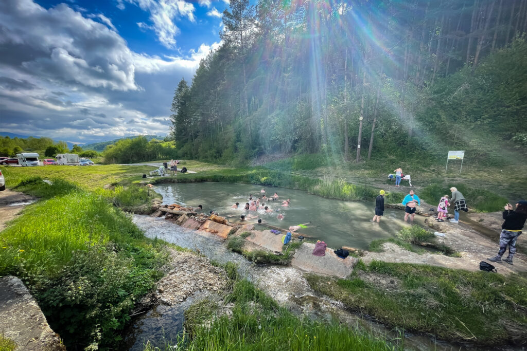 Kalameny Termálne jazierko uprostred lúk. Prírodné termálne jazierko pri obci Kalameny. Teplota vody 33°C, malá hĺbka — vhodné aj pre deti. Žiadne atrakcie ani